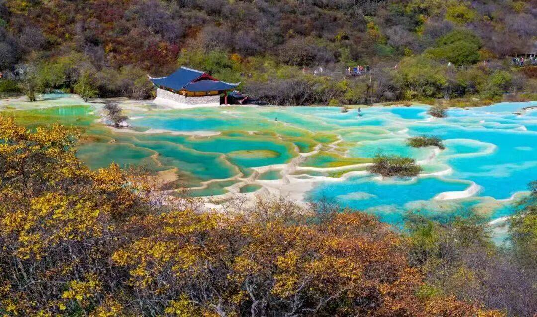 - 必玩亮点:争艳池是黄龙彩池群中面积最大、色彩最丰富的,百余个彩池在阳光下折射出蓝绿色光芒,让人仿佛置身于梦幻世界。黄龙古寺是明代的藏传佛教寺庙,站在寺庙前,可以俯瞰钙化池全景,感受历史与自然的交融。五彩池是黄龙的精华所在,海拔3576米,是中国最北的高山钙华池,池水清澈见底,色彩斑斓,如同童话中的仙境。