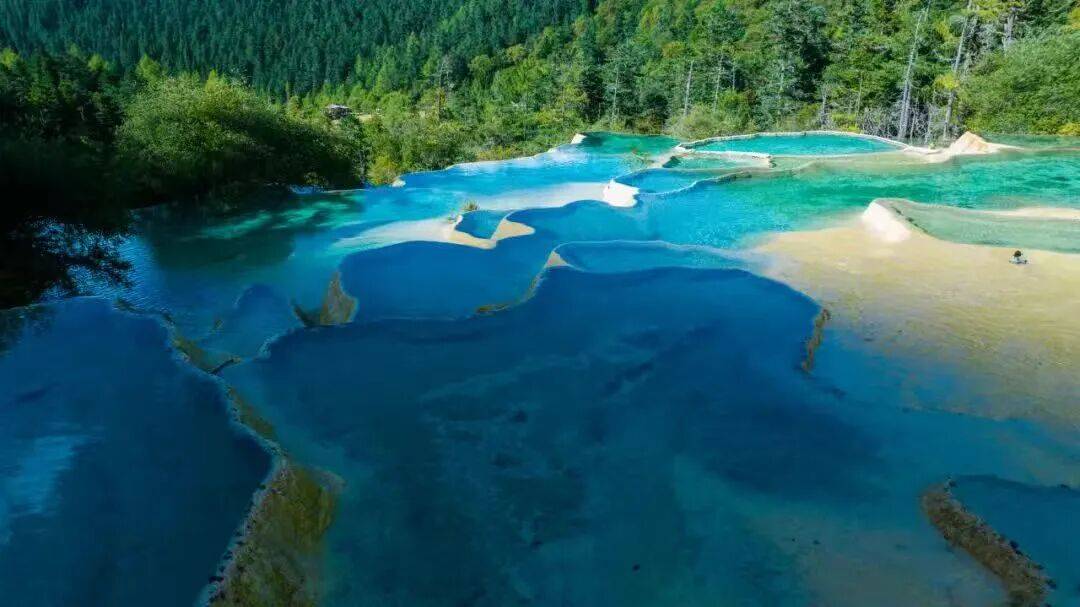 黄龙以其独特的钙化池景观闻名于世,被誉为“人间瑶池”。这里的钙化池层层叠叠,在阳光的照耀下,闪烁着五彩的光芒,仿佛是天上的仙女遗落在人间的宝石。