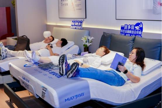 MLILY梦百合展馆人潮涌动,多款智能床吸引了大量观众驻足试躺。观众普遍反馈,梦百合智能床操作简便、场景丰富,展位现场形成高人气聚集效应。
