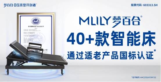 此外,2025年,MLILY梦百合40余款智能床产品通过了适老产品国标认证,在老龄化加速的时代背景下,为广大老年人群打造兼具健康性、安全性、易用性与智能化的产品,保障高质量的晚年生活。