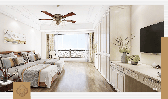 下沉山水景观庭院;户户朝南,卡拉麦里金外墙干挂石材,全屋欧式新古典高级定制家私,日本NAKA品牌专业适老化扶手、施耐德电器、坚朗五金、科勒洁具、全自动卫洗丽、美国杜邦台面、美国York中央空调、地暖、新风系统全覆盖,24小时热水,全屋5G网络覆盖;智能化系统580余摄像头,全公共区域无死角照护,智慧养老“亲可视”,一卡通小秘书、云健康管理、一键叫护、定位功能等。