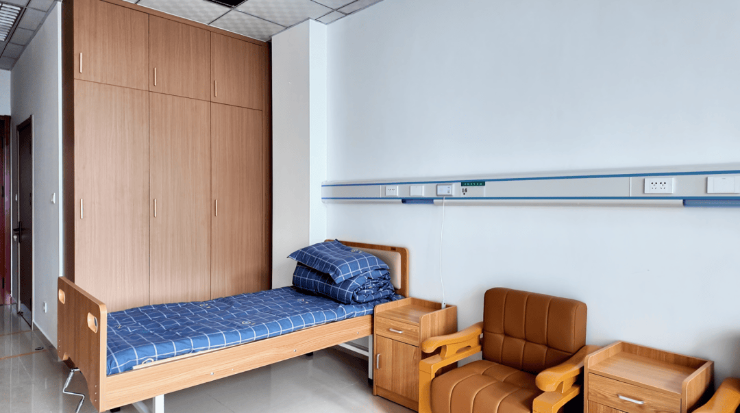 来到风韵荷都社区康养中心(祥和老年公寓),可以看到适老化设计聚焦在里里外外的细节之中——除楼梯之外,整个建筑几乎找不到一处台阶,每一间房内都覆盖紧急呼叫、无障碍通道等配套设施。老人居住的房间分为单人间、双人间还有三人间,房间内配备有空调、暖气等基础设施,盥洗室内,淋浴、马桶、扶手等均按适老化标准打造,宽敞的浴室门,还能通行轮椅等辅助设施。