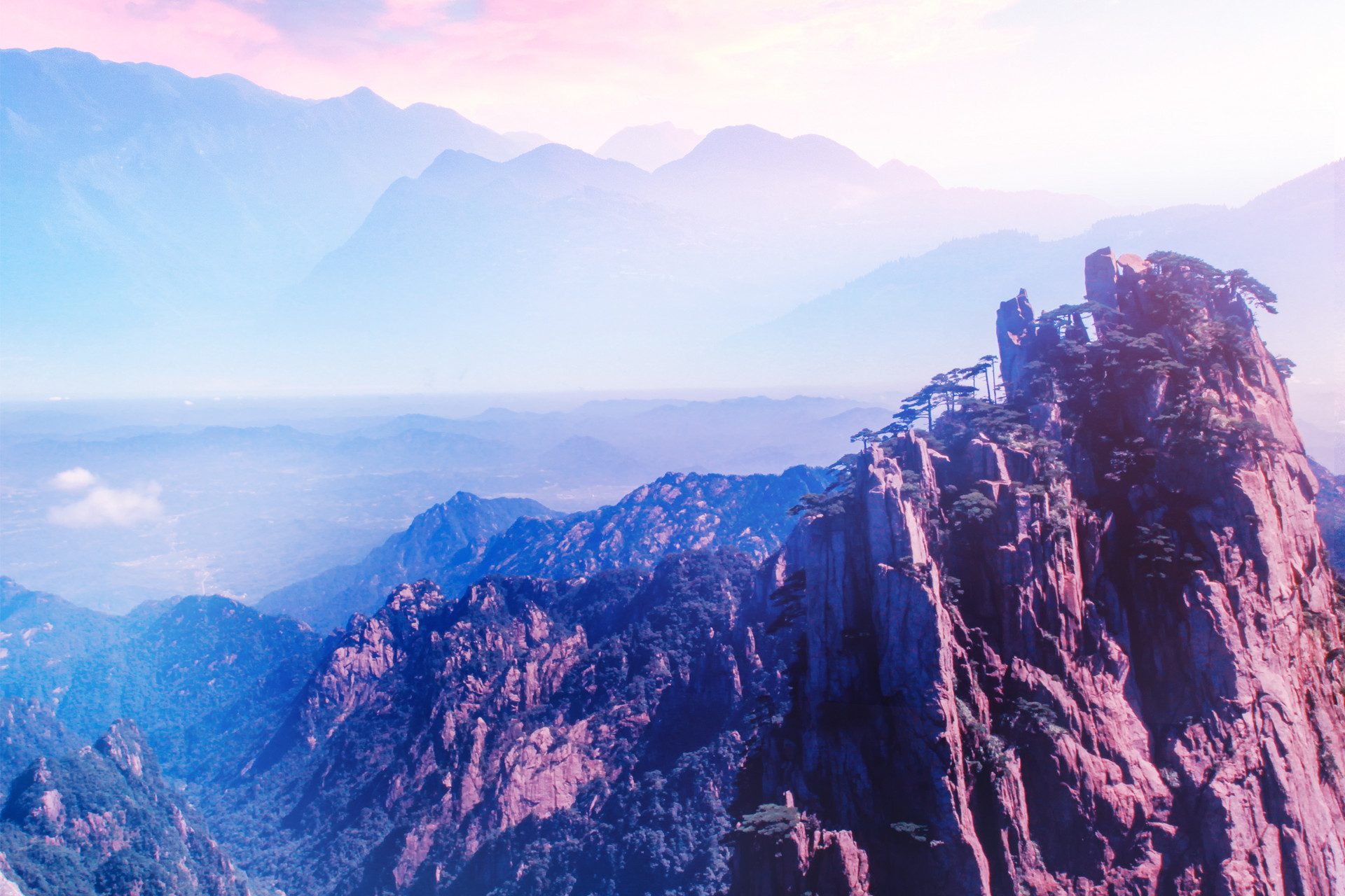 登崂山巨峰,俯瞰山海秋色。云雾翻涌如浪,远处群峰若隐若现,宛如一幅流动的水墨画卷。