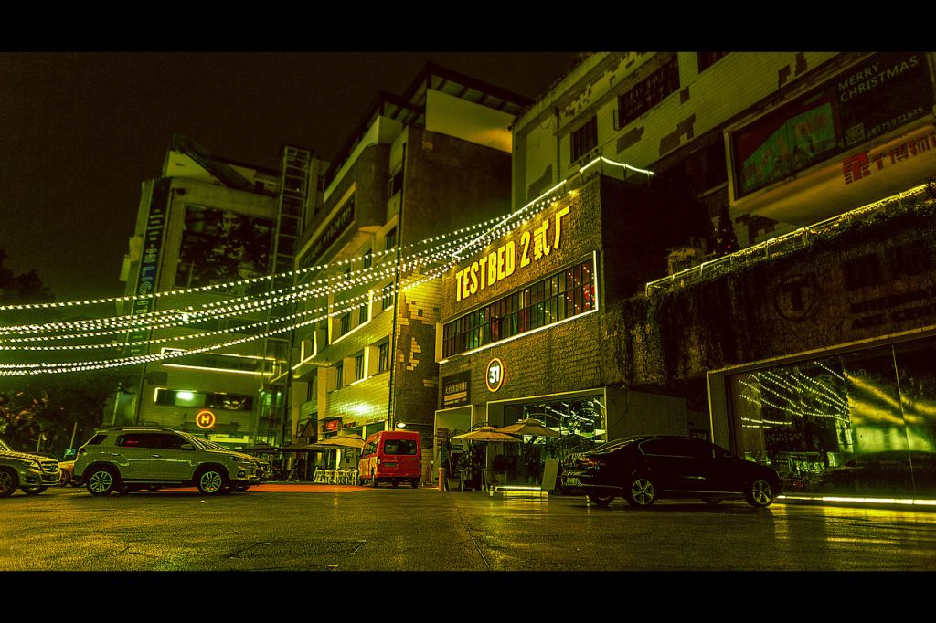 工业风文创园+高空观景台,文艺青年必打卡!“TESTBED2二厂”爱情天台拍城市夜景超有氛围,园区内复古灯光与文创小店交织,随手出片