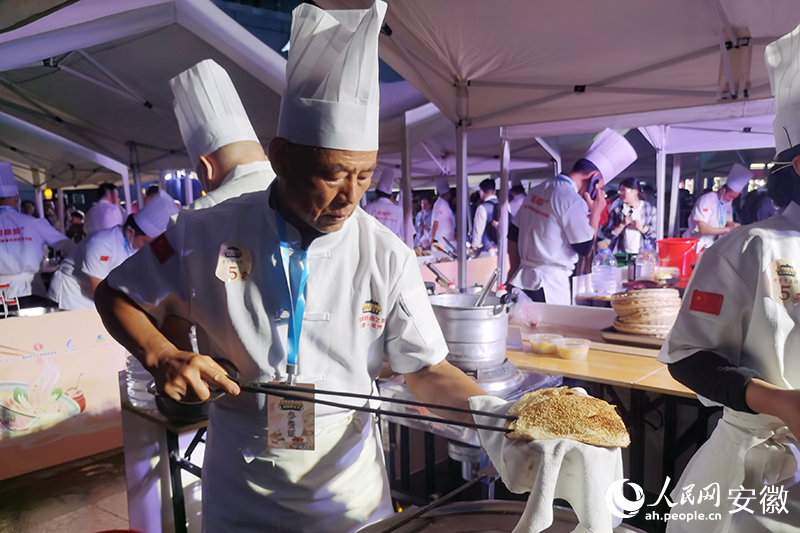 在“超级皖”现场参加比拼的菜品中,既有融合药膳养生的特色美食,也有传承多年的民间小吃。来自涡阳县的燕东信带来了药膳“养生狮子头”,燕东信介绍,与传统清蒸狮子头不同,“养生狮子头”内加入了茯苓粉等药膳元素,配合鸡汤、骨头汤炖煮而成,非常适合老人小孩食用。来自亳州市蒙城县的薛聚才将自己钻研多年的“油酥烧饼”带到比赛现场,“做烧饼我做了40年,蒙城烧饼讲究薄如蝉翼、层层叠叠,香酥入口,是地道的民间小吃。”