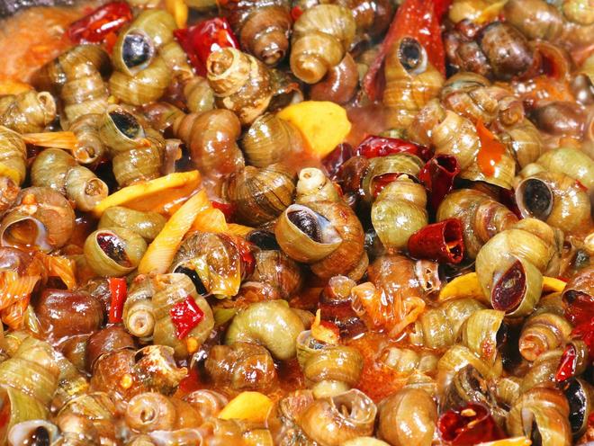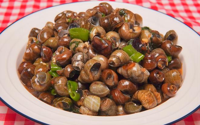 炒螺是柳州夜宵摊上的经典小吃。制作过程颇为讲究:新鲜螺蛳需用盐水浸泡,使其吐净泥沙,然后剪去尾部以便入味。